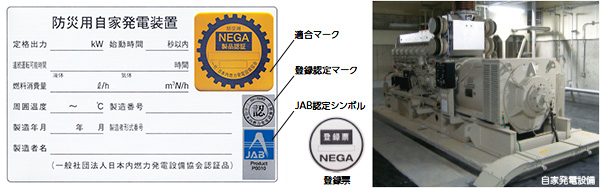 登録認定マーク:消防法施行規則の自家発電設備の基準に適合する製品であることを表示します。
